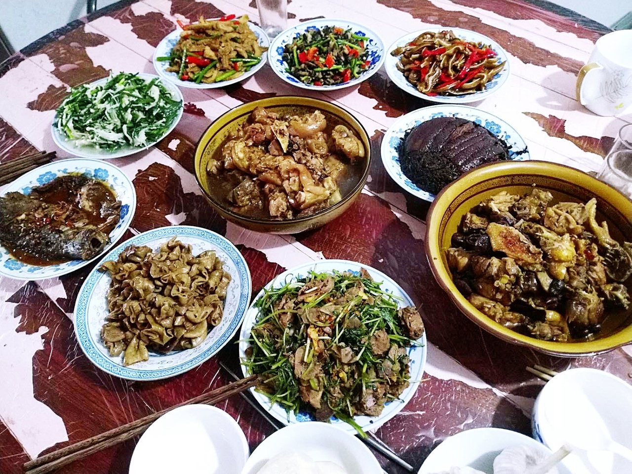 一到家爸妈已经给我们张罗了一大桌好菜👍 还有最美味的麻麻包的粽子和红鸭咸蛋、茶叶蛋👍 妈妈还给我摘好了亲自栽种的绿色蔬菜 …看到满满一桌好吃滴和眼前的一幕…真是幸福感爆棚啊…💓