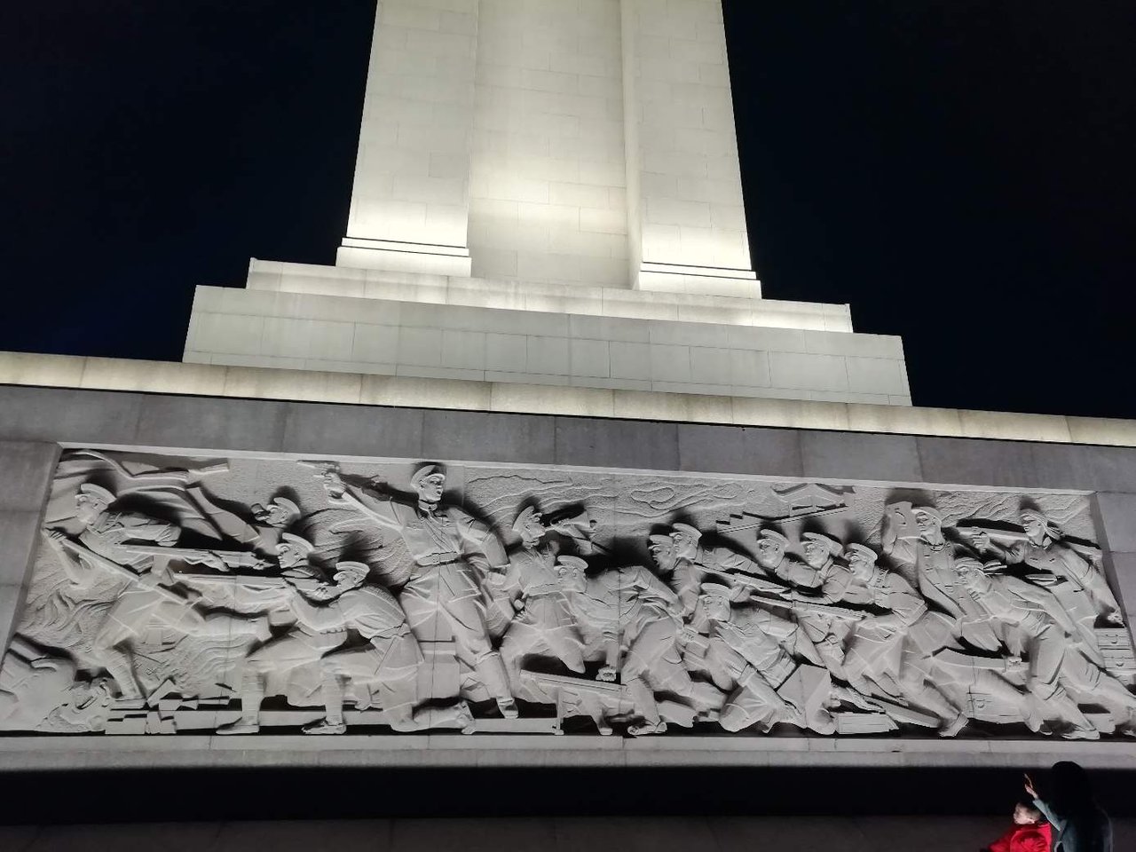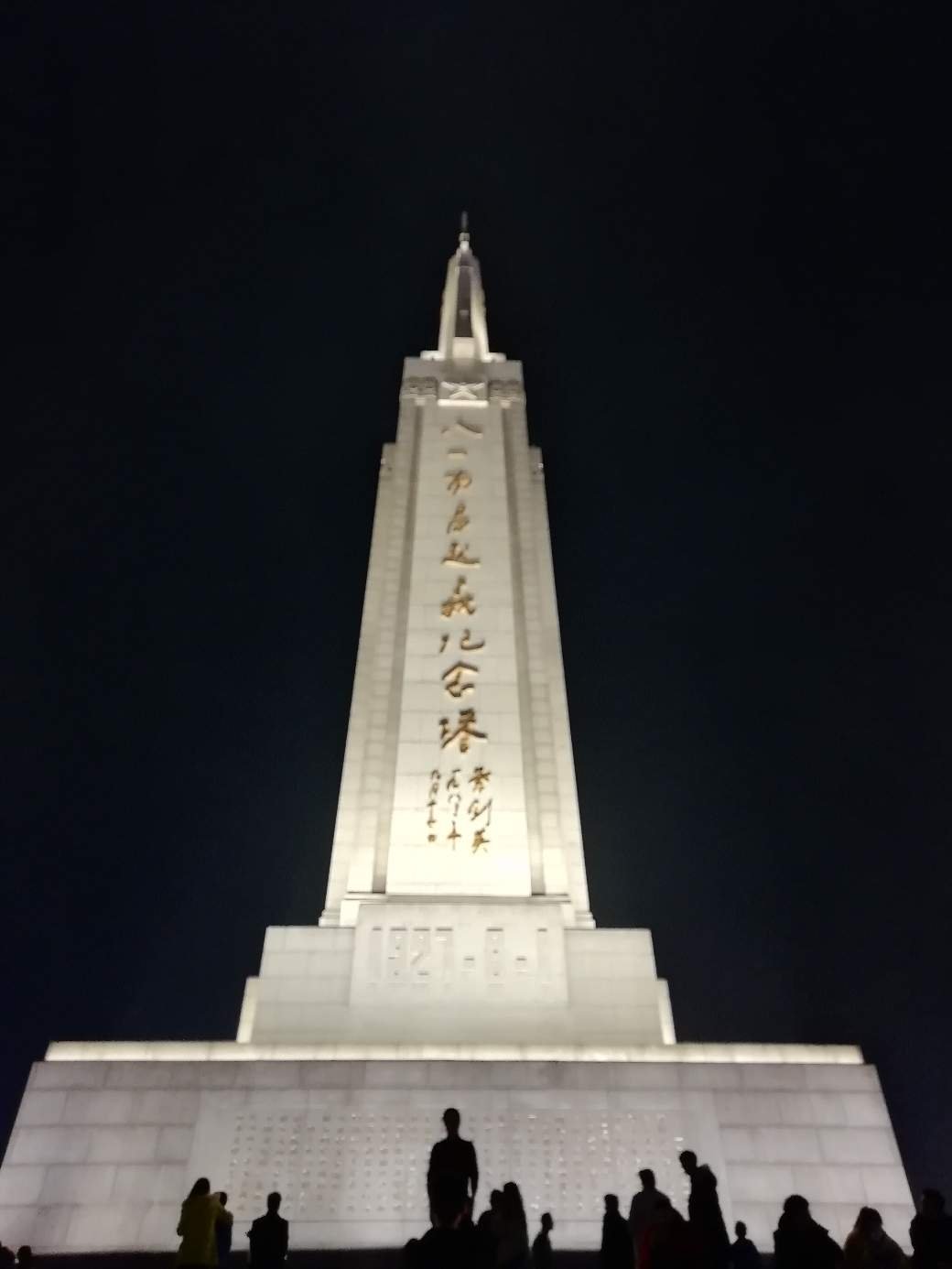 整个纪念塔造型威武!!霸气!!雄伟挺拔!!寓意深刻…上下分别设置的多层灯光和多组投射灯,使夜间塔身显得特别通透明亮🌟并昭示着人们八一军旗永远的鲜红亮丽💫💫💫