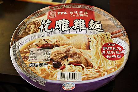 亂入推薦一下台灣熱門泡麵:台灣菸酒出品熱賣的「花雕雞麵」,來台旅客不可錯過。一定要到超市去買一碗來嚐嚐,就像當年到大陸一定要去買碗老罈酸菜牛肉麵來吃吃一樣(很早前就開始在台灣賣了,但最開始時沒有)。調料理有陳年花雕酒,我個人是很喜歡的。