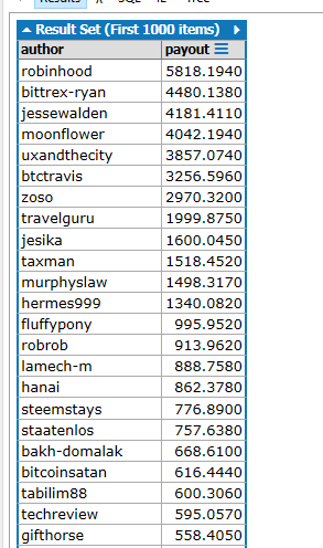 @nationalpark in his post has listed the top authors that publish exactly 1 post and earn the most. This SteemSQL tutorial is going to uncover the magic behind the scene thanks to @arcange ‘s hard work on maintaining SteemSQL.