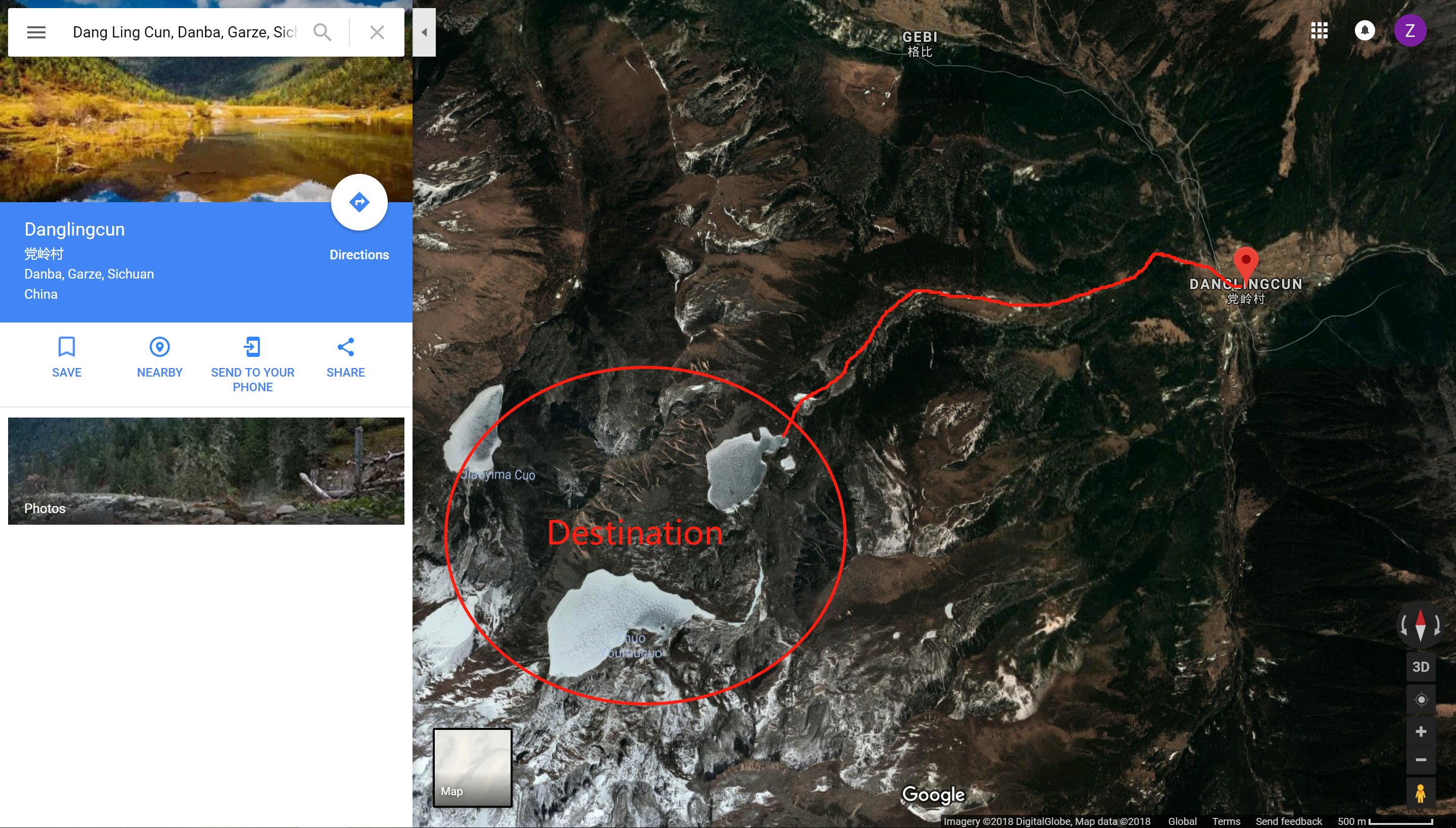 This is search from Google map. The red path is marked by me. It’s a hiking path from Dang Ling Cun to Huluhai. Google would not guild you a correct way. Usually you can’t access to Google from Chinese mainland network environment. If want to use Google map I recommend you download offline map before you go to Chinese mainland.